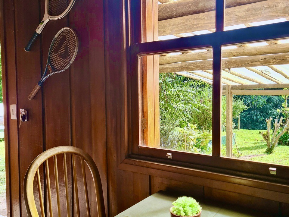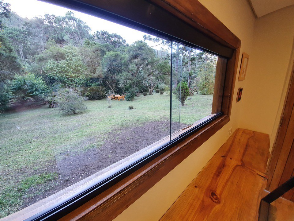 - "Quintal"gramado e exclusivo para o chalé com churrasqueira de alvenaria
