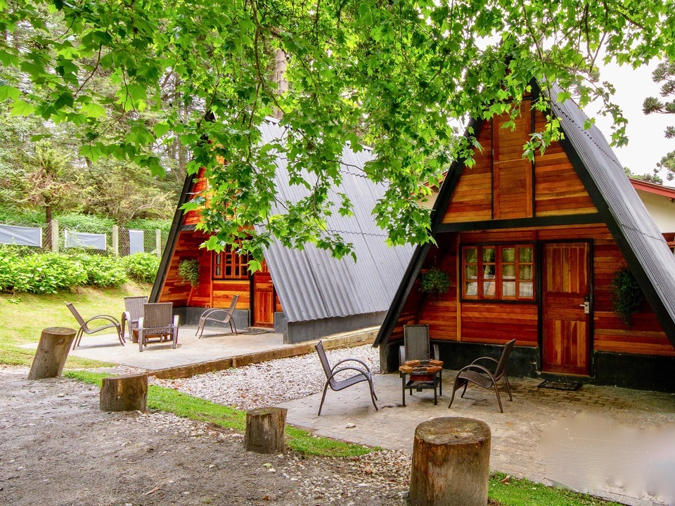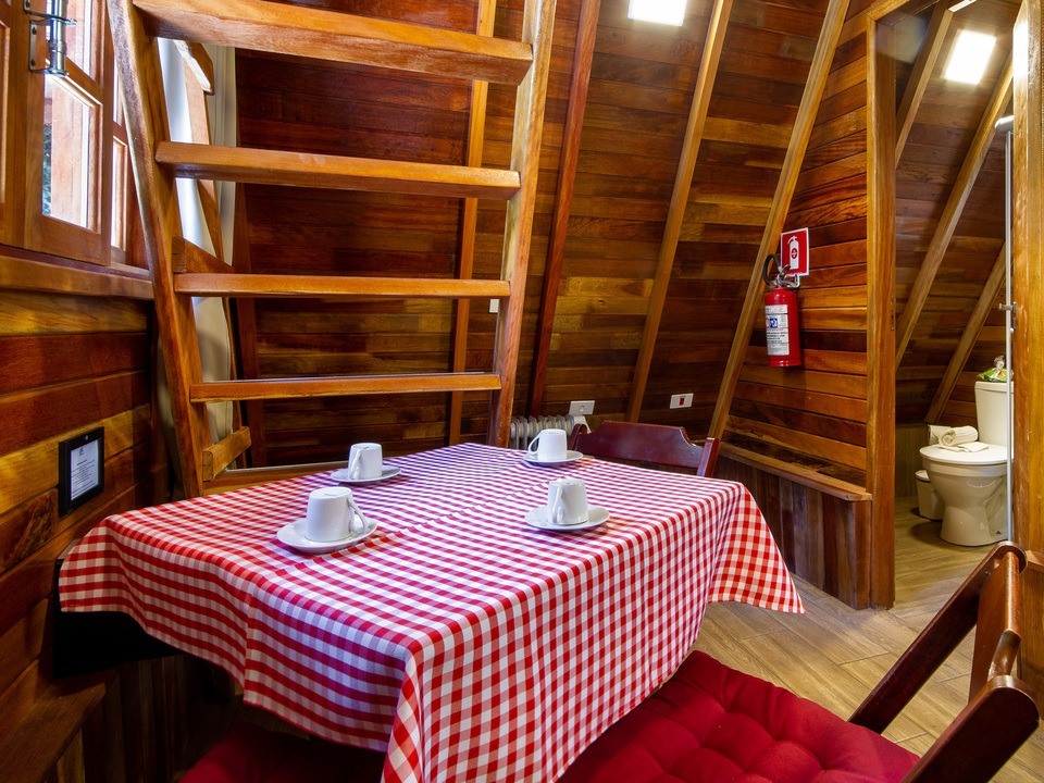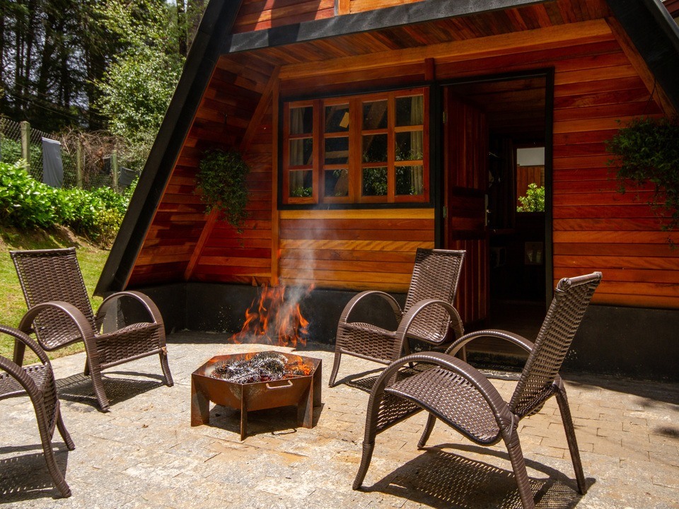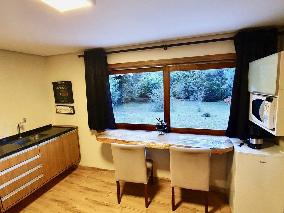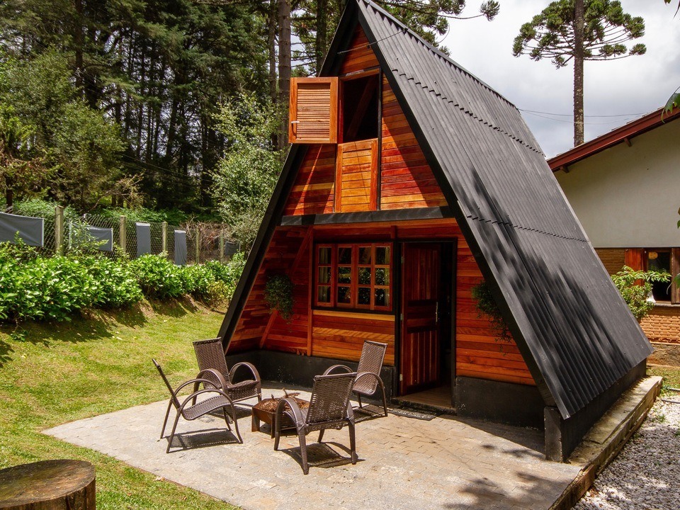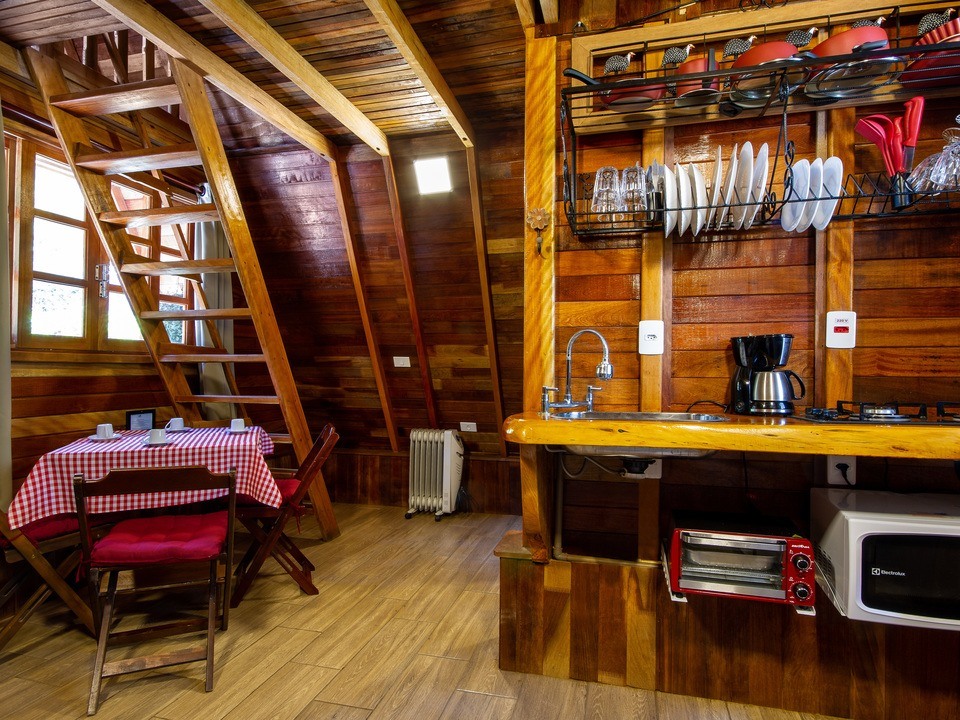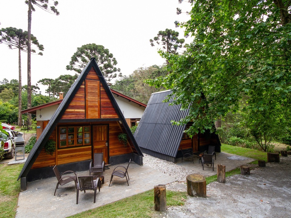 - Duas delas são os chalés estilo suíço com cozinha compacta e banheiro SEM BANHEIRA e SEM LAREIRA