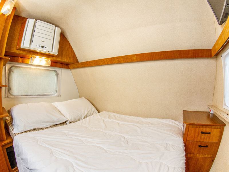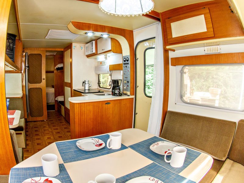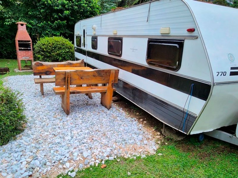 Você já imaginou a experiência única de estar em um trailler, com todo o conforto de uma pousada e área privativa no jardim, exclusivamente para você ?! Temos esse lindo trailler, com a verdadeira emoção de um autêntico Trailler Classico dos anos 80, 100% original, raro e com todo o conforto de uma casa completa , com um delicioso café da manhã, arrumação diária (exceto arrumação da cozinha e limpeza de louça e utensílios), roupa de cama e banho , lareira externa e uma área de piqueniques. Para até 4 pessoas sendo uma cama de casal e um beliche (possibilidade de 5 pessoas, com uma cama compacta na sala, mediante consulta)