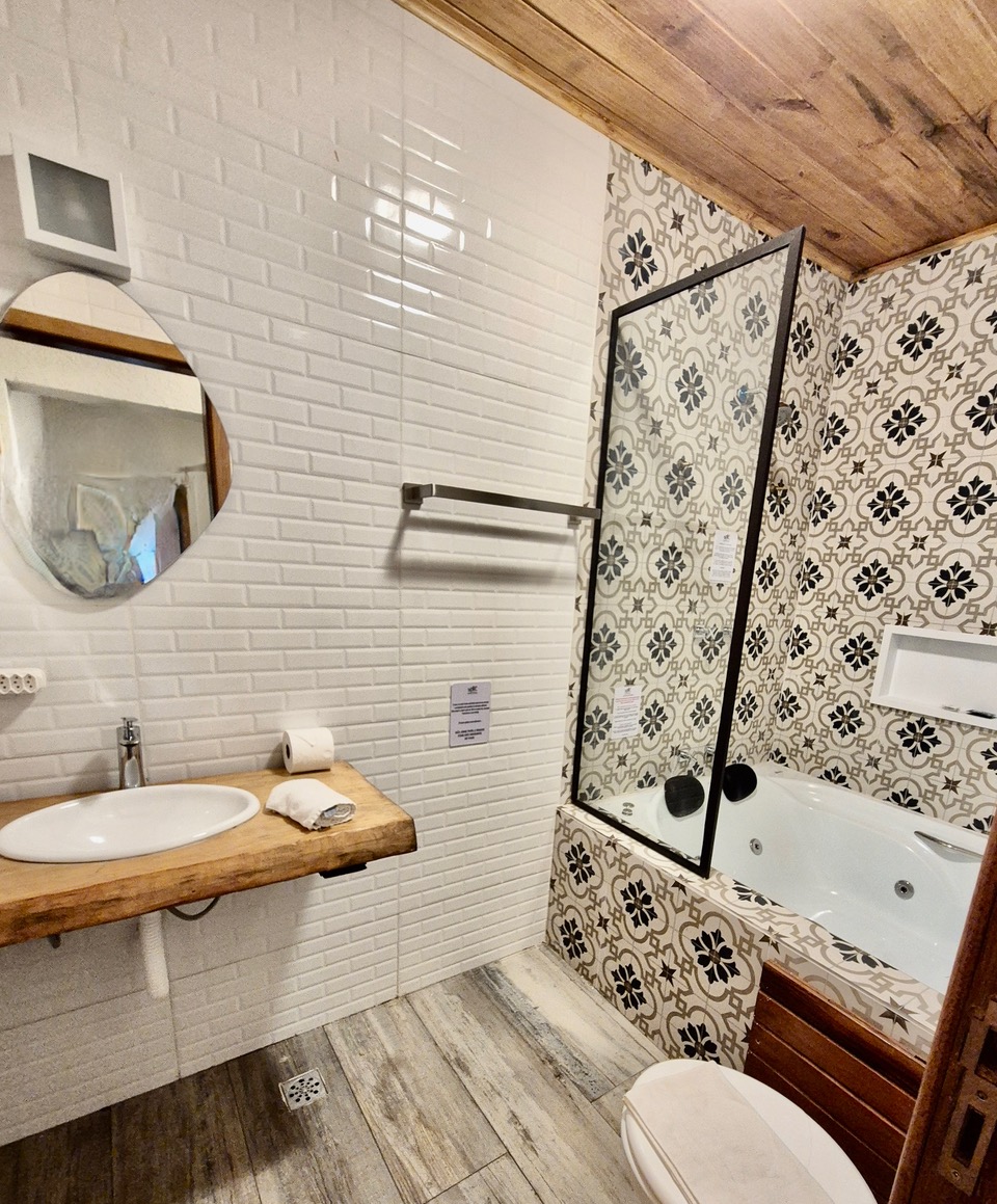 - Banheiro com agua quente nas pias, delicioso chuveiro pressurizado e banheira para duas pessoas de imersão